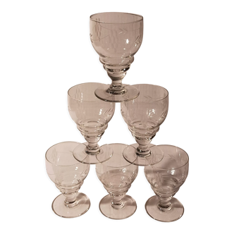 Set of 7 beautiful Art Deco cups They are made of yellow glass. Very good condition! Rare! Height: 8.2 cm Top diameter: 8.5 cm Capacity: 13 cl Weight of the lot: 815 gr.