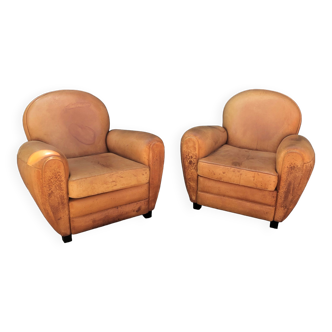 Pair of armchairs in the Ulrich style, structure and legs in solid wood, covering in satin, made in the 1950s. Conditions as shown in the photos, it is advisable to redo the upholstery.