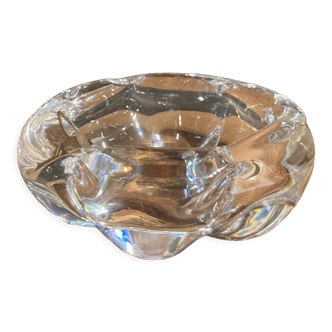 Pair of clear crystal salt cellars signed Daum France. Their free-flowing, undulating shape reflects light like the surface of water, typical of the crystalworks' work in the 1970s. These refined pieces can be used as salt cellars or simply as a decorative pair on a table or side table. Condition. Excellent overall condition. No chips or cracks. Minor signs of wear on the base, discreet and normal for their age. Daum France signatures clearly visible. Perfect brilliance. Details. • Clear crystal signed Daum France. • Period: circa 1970. • Dimensions: approx. 7 × 5 cm. • Excellent overall condition.