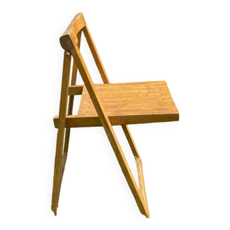 Small desk in light wood year 80 in very good condition. Folds completely, and measures 20 cm X 80 cm X 50 cm. The top rises and you can store notebooks, pencils etc... The interior is 5 cm high by 33 cm X 39.5 cm. The seat is 41 cm high and measures 39 cm X 26.5 cm.
