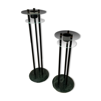 "Saturn" desk lamp by Robert Sonneman for George Kovacs, circa 1970. This beautifully crafted desk lamp features a truly original design. Black metal frame with a perforated metal reflector and a glass disc, hence its name "Saturn." Dimmable switch on the base. Vintage item in very good condition.