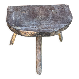 Ancient tripod stool. Of wood in the rough. It is heavy solid and stable.