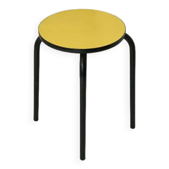 Pretty step stool in yellow formica. Very functional, the step folds under the seat. Good condition. Slight traces of oxidation in places on the chrome. Brilliant yellow color.