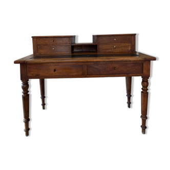Small authentic Scandinavian desk from the 1960s. Clearly marked "Denmark" (Danish production) Tapered legs. Teak veneer. Light green painted top. Mail separator compartment. Normal wear and tear over time. No shipping, to be collected on site.
