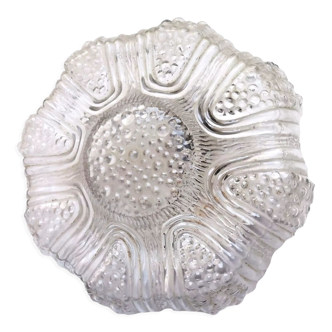 Vintage gold glass ceiling light. The mounting base is not the original one but it fits the globe perfectly. Ceramic E27 socket (a small chip on the socket, without consequence) Dimensions: 29 x 29 X 14 cm. Weight: approximately 3 kg.