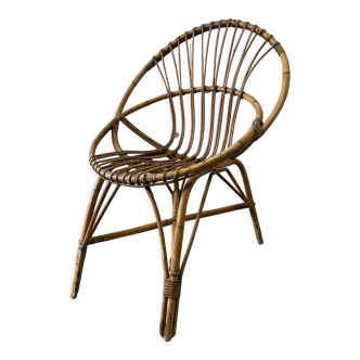 1950s rattan armchair from the south of France. Seat height 37.