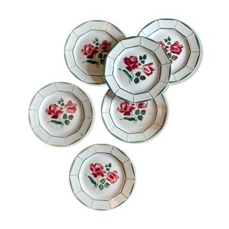 Dessert plates XX °, iron earth, stamp longchamp france, unalterable decoration hand way. 1 slight accident on the plate "channel crossing-1785 (see photo). Various decoration of manned balloons, characters from 1785 to 1810.