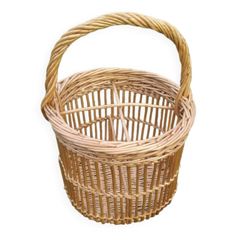 Circular consisting of 6 places for glasses diameter 9 cm and a central place for bottle diameter 10 cm. Rattan basket very beautifully made. Spiral structure base height base 10 cm and 37 cm high with handle. Diameter 32 cm. What if we went to have a refreshment in the garden, on the terrace!.