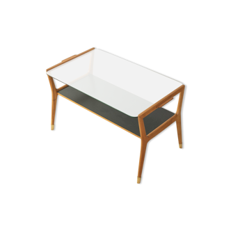 Wall coat hanger attributed to Ico Parisi, Italian design from the 1950s. Wood with brass, glass and imitation leather hangers. Glass top, intact and in good condition, small signs of aging.