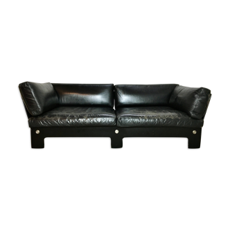 Althaus Thomas 70s DS-450 model sofa with head rests The armrests are reclining and can be modulated into two meridians The base is made of black lace metal and the coating is dark green full-skin leather