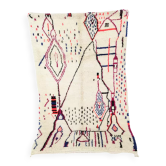 Berber carpet hand-knotted in soft wool by the women of the middle atlas mountains in morocco.