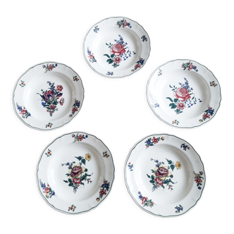 Vintage deep plates from the French manufacture of Sarreguemines, Danish model in ceramic. This lot consists of 4 deep plates with different patterns, each with a diameter of 23 cm. Ref: 210429.