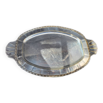 Magnificent oval silver-colored metal dish. Worked edge. Good condition, just a little wear but still correct and charming. Very beautiful vintage and refined piece.