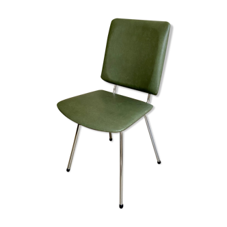 This chair was designed by andré simard, french designer, for airborne in 1960 (illegible but recognizable label of the publisher present under the seat)it is composed of a black metal tubular structure, a backrest and a foam seat covered with leather / imitation leather that has some stains.