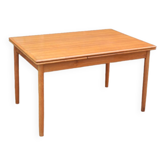 Teak dining table produced in Sweden in the 1960s. In excellent condition with some wear marks. Conforms to vintage condition. Beech base. Provided without extension cords. 22611.