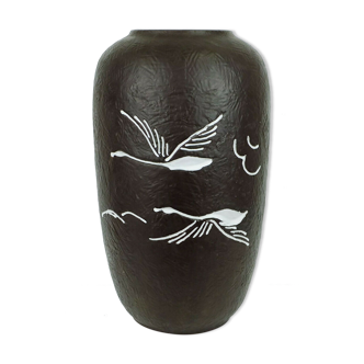 Lovely antique vase made of polished glass with matte gold rings and a hand-painted white swan among the reeds. The gilding is a little worn if you look closely. Simply charming!
