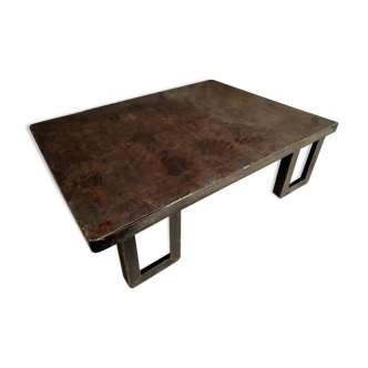 Vintage square coffee table of the years 70-80, in black marble mottled gray, 4 square feet, height: 40cm, width X depth: 100x 100cm, feet: width X depth: 20x20cm, very nice state of conservation, no defects to report.