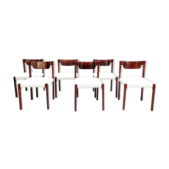 4 wooden and cotton chairs coated. Structure, seating and back of formed wooden lined with coated cotton. Very good general conditions, solid structure. Some marks on the wood (very few). The seats are in very good condition.