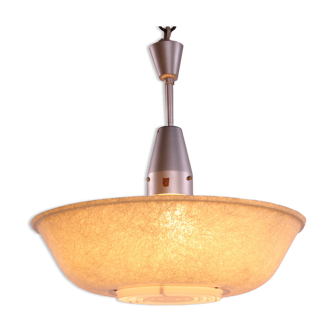 Black, chrome, and glass chandelier with two lights. Maison Arlus, 1960s.
