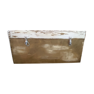 Stool old fisherman's chest in wood and skaï. Two levels of storage: an upper part composed of 3 lockers. A lower part that opens onto a practical storage chest. Seat in upholstered and comfortable skai. Coating in good condition. Transport strap with a knot. Stable, clean and in its original patina. Pretty green color. Very decorative vintage look! Practical in a child's room, an entrance, a terrace... Height: 50cm. Width: 42cm. Depth: 36cm.