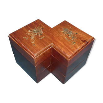 Box for vintage card games in wood and gilded brass 15.40 X 12cm for cards of 6 X 9.5cm.