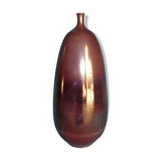 Ceramic ball vase in natural tones (beige, ochre, red) as brushed. Of beautiful workmanship, the artist has nevertheless not been identified. Neck diameter 3 cm. Nice condition!.
