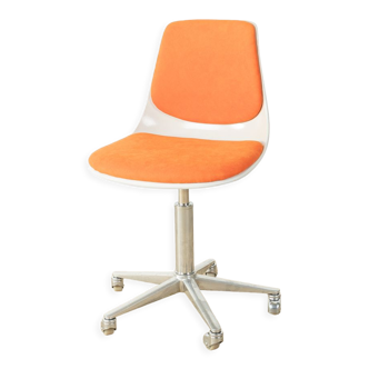 Office chair or conference 1970. Wooden legs with suspa swivel and cushioning system (system that allows the seat to return to its original position after a swivel). Very good condition of the whole. Foam and new fabrics. Perfect for a meeting room, office or at home. Seated height 46 cm.