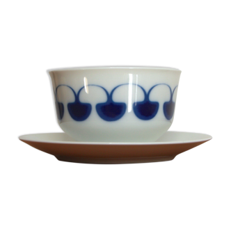 Saucière in the spirit of the seventies 70's in porcelain from bavaria (schumann arzberg) made in germany. Orange flower décor. Bowl dimensions (height/diam): 6/11 cm. Total dimensions (height/diameter): 7.5/17.5 cm.
