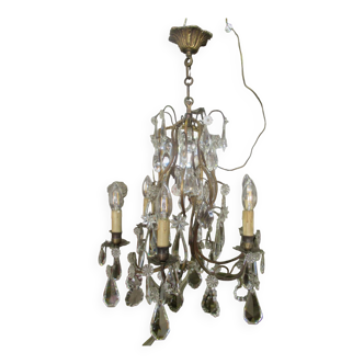 Antique Italian bronze chandelier with porcelain angel. Total height 60 cm. Diameter 46 cm. The lamp is in its original condition. The angel is glued.
