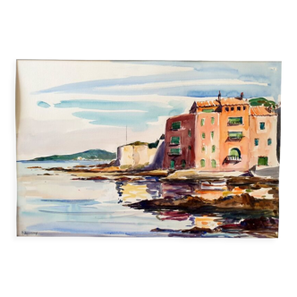 Oil on wood panel signed bul; landscape of mykonos in greece; dimensions: 73x54cm.