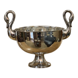 Large champagne basin from a bar. Stainless steel tank and bronze handles. Allows you to keep 6 bottles cool. Immaculate condition. Dimensions height 30cm diameter 42cm.