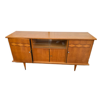 Pretty blue art deco buffet. With 3 shelves, metal needle feet.