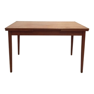 Small farmhouse table with turned legs in solid cherry wood from the 1950s. We love its size and clean lines - the fine grooves on the edges of the top, the slender and elegant shape of the legs. The wood type, cherry, gives this table a particular and typical hue - with a rather red wood. Fully restored, treated, sanded, lightly stained, and then protected with a transparent matte varnish. You can see traces of the old patina in places. Overall good condition, with a few small marks in places, please refer to the numerous photos. - Dimensions - L 160 X D 80 X H 75 cm. Height under the apron - H 61 cm.