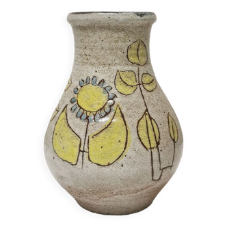 Beautiful "lava" ceramic vase from West Germany from the 1970s in a lovely intense orange colour with a floral decoration on the body; in excellent condition. Height: 30cm. Neck diameter: 9cm. Maximum width: 13cm. Fast and careful shipping.