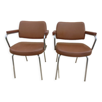 Office armchair in gray imitation leather. Good condition. From the 70s.