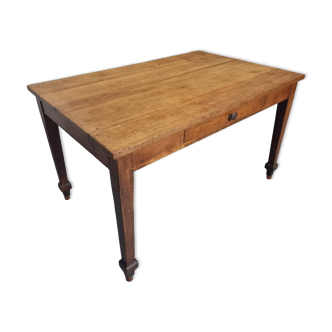 Table 2 drawers top natural oak. Legs and original off-white patinated belt. Height under crossbeam 60 cm. Total height 76 cm. The lock is in possession of a key but does not work. Twentieth.
