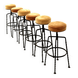 Bar stools; set of two; in metal and moleskine; the seats turn; the moleskine can be redone. At the foot of the buyer and according to his own means to change these; it was I myself who redid the assizes.