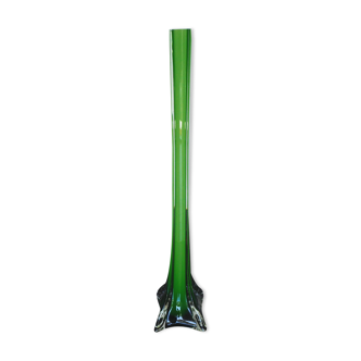 Superb and exceptional for its size: 70 cm high! Of an intense king blue. In transparent glass but in milk glass inside. The color therefore remains bright whatever the background of the environment (wall or table). The glass is thick and strong. Very nice object, space-saving in width but which allows to raise the plant to 1.20m / 1.50m. Its large size allows it to be placed on the ground. A vase that stands out! Some small traces and small scratches but it is not noticeable, it looks almost new to the eye. Stained inside on the first third at the bottom but this is seen much less than in the photos and is not particularly noticeable in real life; it is rather perceived as shades of blue. Height 70 cm. Diameter of the base of the foot: 13.5 cm.