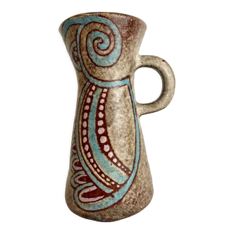 Vintage pitcher from the 1970s Rustic charm of Alsatian Betschdorf pottery In glazed stoneware with arabesque patterns On a brown background Height 28.5 cm Base 11 cm Opening 8.5 cm In very good vintage condition.