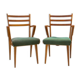 Paire de chaises rembourrées en bois courbé de la société jitona. Ils ont été fabriqués dans l’ancienne tchécoslovaquie dans les années 1970. Il dispose d’une structure en bois de hêtre et d’un siège rembourré. Les chaises sont en bon état d’origine, ont un nouveau tissu et le bois montre de légers signes d’âge et d’utilisation. Le prix est pour la paire. Hauteur: 90 cm. Largeur: 44 cm. Profondeur: 50 cm. Hauteur d’assise: 46 cm.