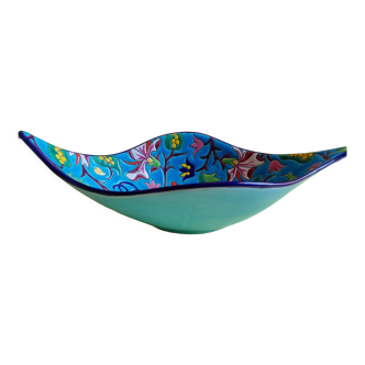 Ceramic trinket dish with hand-painted decoration, signed 236 voluta. In very good condition. Dimensions: 6.5cm high / 17cm long / 11.5cm wide.