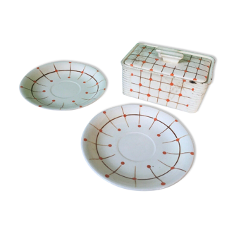 Handmade ceramic dish grid model, white and black. Artisanal manufacture of the duro house, very small portuguese family business for generations. Very nice quality, painted and enamelled by hand. 27 X 14 cm. Height 3 cm. With his box.