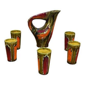 A hybrid trio of ceramics with subtle gradations of organic hues. They are simultaneously vases, pitchers, and carafes—in short, astonishing. Five small raised dots punctuate the surface on both the front and back. Stamped Garnier France and numbered. Pure Art Deco. Sold together so as not to disrupt the overall aesthetic. Height 19 cm. Width 20 cm. Depth 6.5 cm.