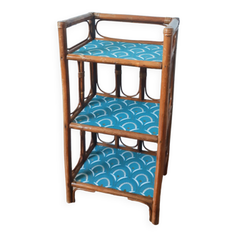 Elegant and graphic, the small vintage rattan furniture is a classic of bohemian decoration! Vintage rattan bedside. Information: ◦ material(s): natural rattan, wicker and wood. Width: 34.5cm. ◦ height: 68cm. ◦ depth: 28.5cm. Origin(s): 60s/70s. Note: old object bearing traces of wear including stains on the trays (see photos). Object found with passion.