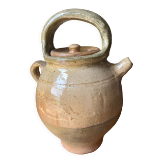 Superb vintage terracotta jug or jug with lid, ochre tones, partially glazed. A porous handcrafted work, this ancestor of the gourd widespread in the Mediterranean basin allows water and wine to be refreshed by evaporation. A decorative object par excellence, it will find its perfect place in your kitchen or other living room. Piece in perfect condition. Height. 20cm / Width. 19cm.