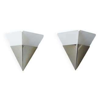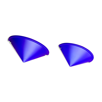 Colorful ceiling lamp made by Ikea in the 80s. This lamp is inspired by the work of Ettore Sottsass, founder of the Memphis group. The lampshade of the lamp is made of cream plastic, a steel back plate and three wooden supports of the lampshade in red, blue and yellow and each in a different geometric shape. Designer: unknown Manufacturer: Ikea Material: lacquered wood, plastics, metal Color: red, blue, white, yellow Period: 80s Dimensions (HxWxD in cm): 45 x 45 x 23 Condition: The lamp is in good condition with some wear and tear due to age