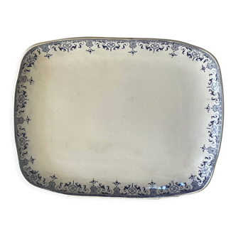 Old rectangular dish dating from the 1900s. The blue floral motifs are covered with a partially faded golden border due to age. Sacavem is a factory created in portugal in 1856 by manuel joachim afonso and later james gildas. This factory has been considered since the beginning as one of the best in europe. A museum in lisbon is dedicated to him.