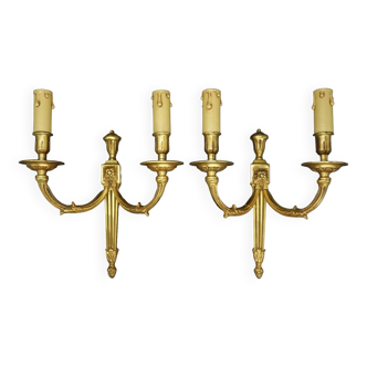 Pair of vintage wall sconces in gilded metal and glass, adorned with a design of stylised leaves and flowers. In the style of Maison Baguès. Metal and moulded glass. Very good condition, delivery or collection in person possible in Marseille.