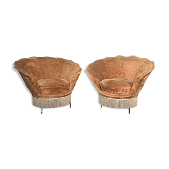 Pair of toad armchairs 50s. Sitting in very good condition. No addicts. Mustard color. Seat height 34. Delivery by cocolis possible.