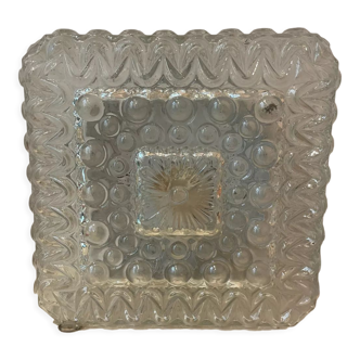 Beautiful wall or ceiling light in molded glass with cut sides. Thick glass, beautiful light effect projected on the walls, rare atypical shape. It will give an authentic and unique touch to your decor. Very good condition, works perfectly. Dimensions: l 20 cm, d 11 cm.